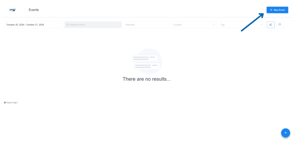 Similar to creating regular events, you need to access the “Events” page, click on the “+ New Event” button in the top right corner or the “+” on the bottom right corner of the page, and the “New Event” dialog will appear.