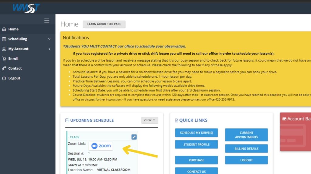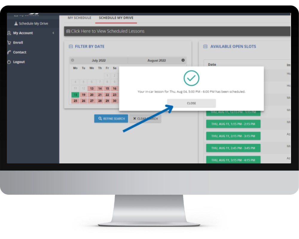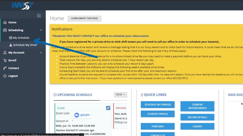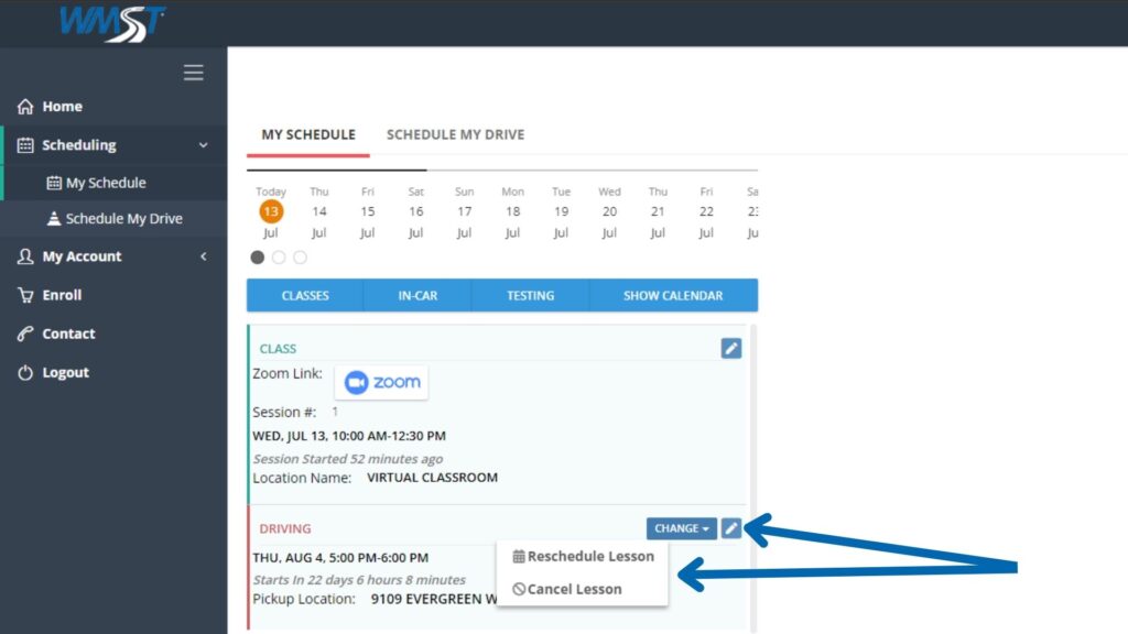 Your 15 classes will be online and are easy to join from your home. Please follow the steps below to login to your class and budget a few mins extra to familiarize become familiar with how to schedule drive lessons.